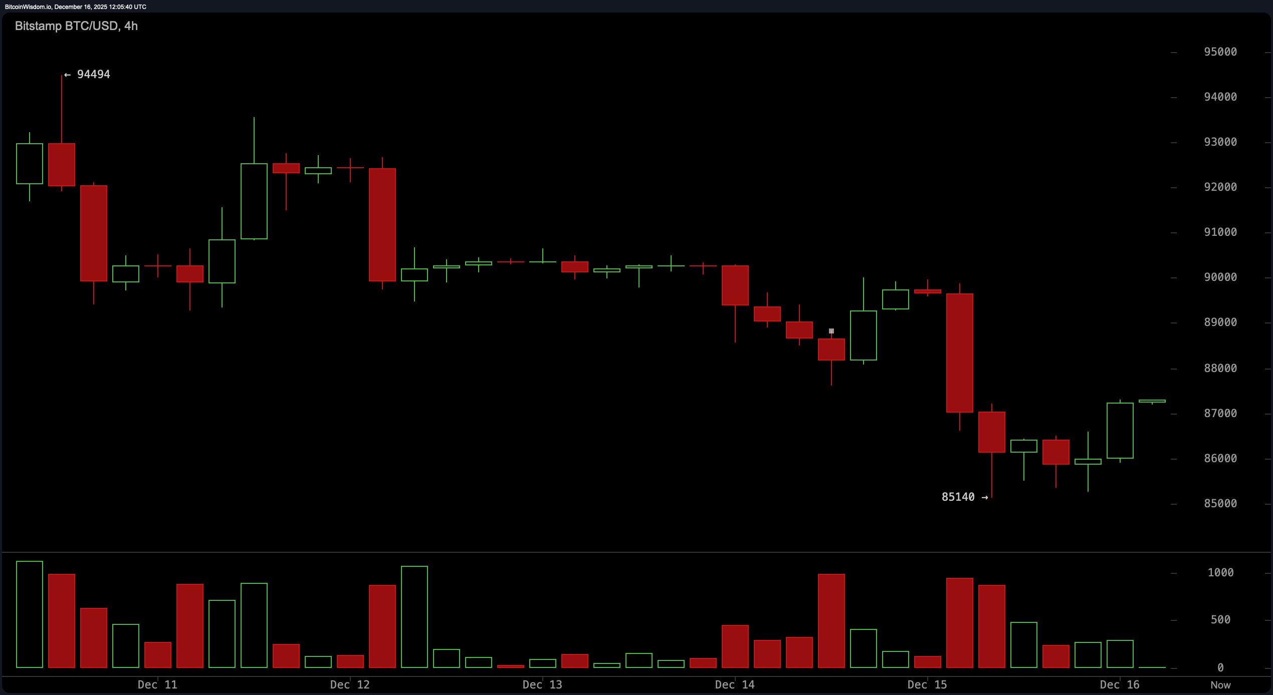 Эти зеленые свечи? Кажется, им не хватает продолжения, что говорит о том, что покупатели, возможно, просто неспешно прогуливаются, наслаждаясь видами. Следующий этап снижения кажется неизбежным, если наш устойчивый Bitcoin не пробьет мистический барьер в $88,500 с высоким объемом и тем подтверждением, которое можно было бы ожидать от мудрого оракула.