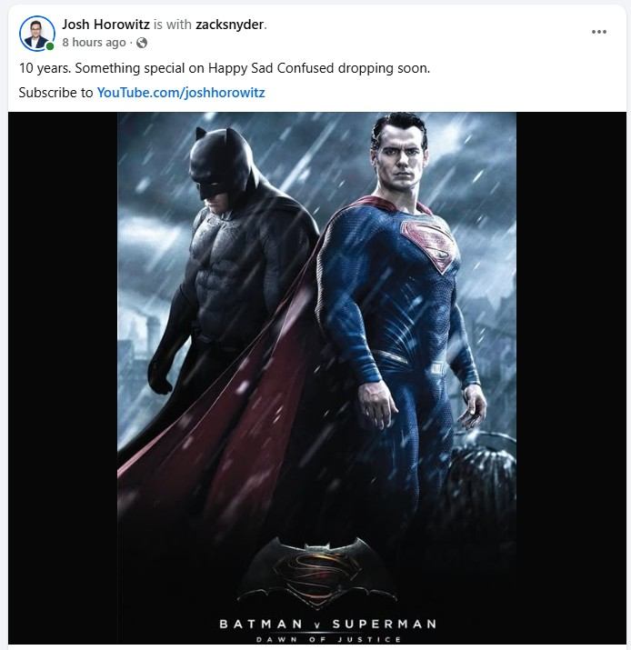 Хорвиц намекнул, что грядет что-то захватывающее, связанное с десятилетием Batman v Superman, что заставило многих поверить, что Снайдер может поделиться не только воспоминаниями во время своего интервью в подкасте. Это может быть просто взгляд назад на фильм, или это может быть крупное объявление.
