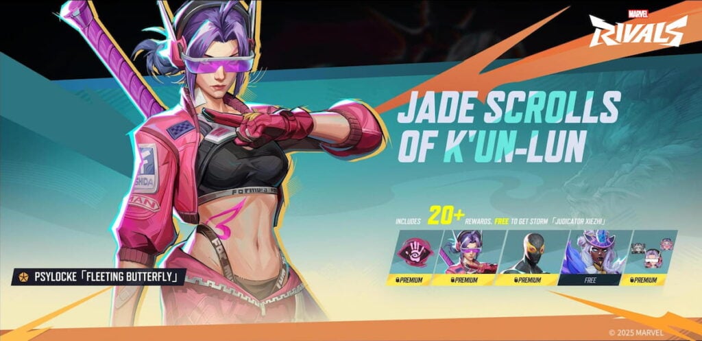 Новое событие «Нефритовые свитки Кун-Луна» представляет специальный пропуск с обликами героев для таких персонажей, как Storm, Spider-Man и Psylocke. Играя в матчах и выполняя задания, вы можете повысить уровень пропуска и получить костюм Судьи Сьечжи для Storm бесплатно. Если вы приобретете пропуск за lattice, вы также разблокируете дополнительные косметические предметы, включая облик Spider-Man в черном и золотом цвете и абсолютный облик Fleeting Butterfly для Psylocke, а также другие награды.