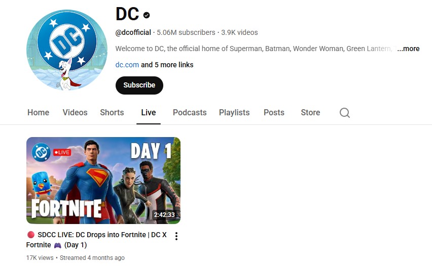 В настоящее время в разделе «Прямые трансляции» канала представлена только трансляция Superman Fortnite. Марафоны трансляций Creature Commandos нигде не найти.