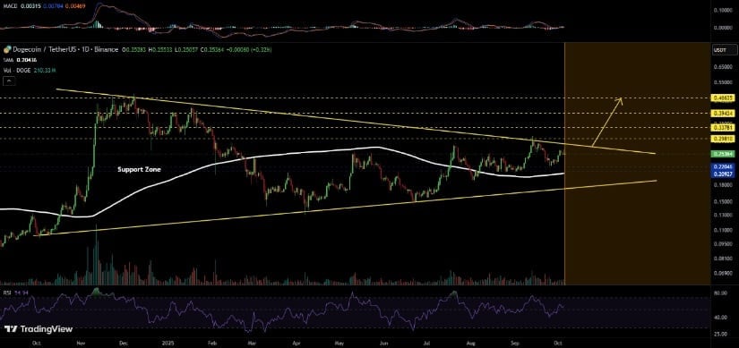 Кроме того, эти зоркие аналитики полагают, что DOGE поднимается по восходящему каналу, с упорным уровнем сопротивления около $0.28. Пробей его, и мы взлетим к мечтам о $0.32-$0.34 или, кто знает, куда еще. О, ирония иронии! 😏