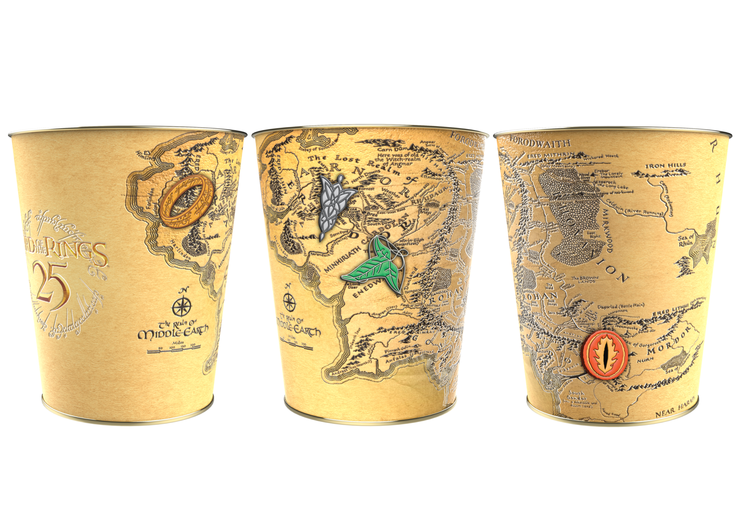 Посетители кинотеатров AMC могут получить коллективную жестяную коробку с набором магнитов на тему квестов. Regal и некоторые небольшие кинотеатры вместо этого предложат специальную чашку в форме ‘Единого Кольца’ для напитков и закусок.